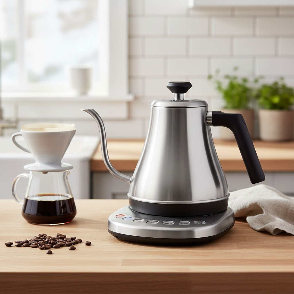 The unique gooseneck spout provides precise water flow, perfect for pour-over coffee or tea. Ergonomic handle ensures comfortable grip for controlled pouring.